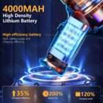 Long-lasting battery life can easily clean up the hygiene in the home car. Dual-core frequency conversion chip can easily handle the cleaning in the car and at home, reasonably release the current under the monitoring and adjustment of intelligent power supply management system, and cooperate with air cooling system to ensure the continuous and excellent operation of battery pack, which can complete the cleaning of a larger area at one time.