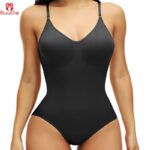 (GUUDIA V Neck Spaghetti Strap Bodysuits with Padded Body Suits Open Crotch Shapewear Slimming Body Shaper Smooth Out Bodysuit).