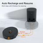 Auto-recharge:If the battery gets low it will return to get charged then resume cleaning